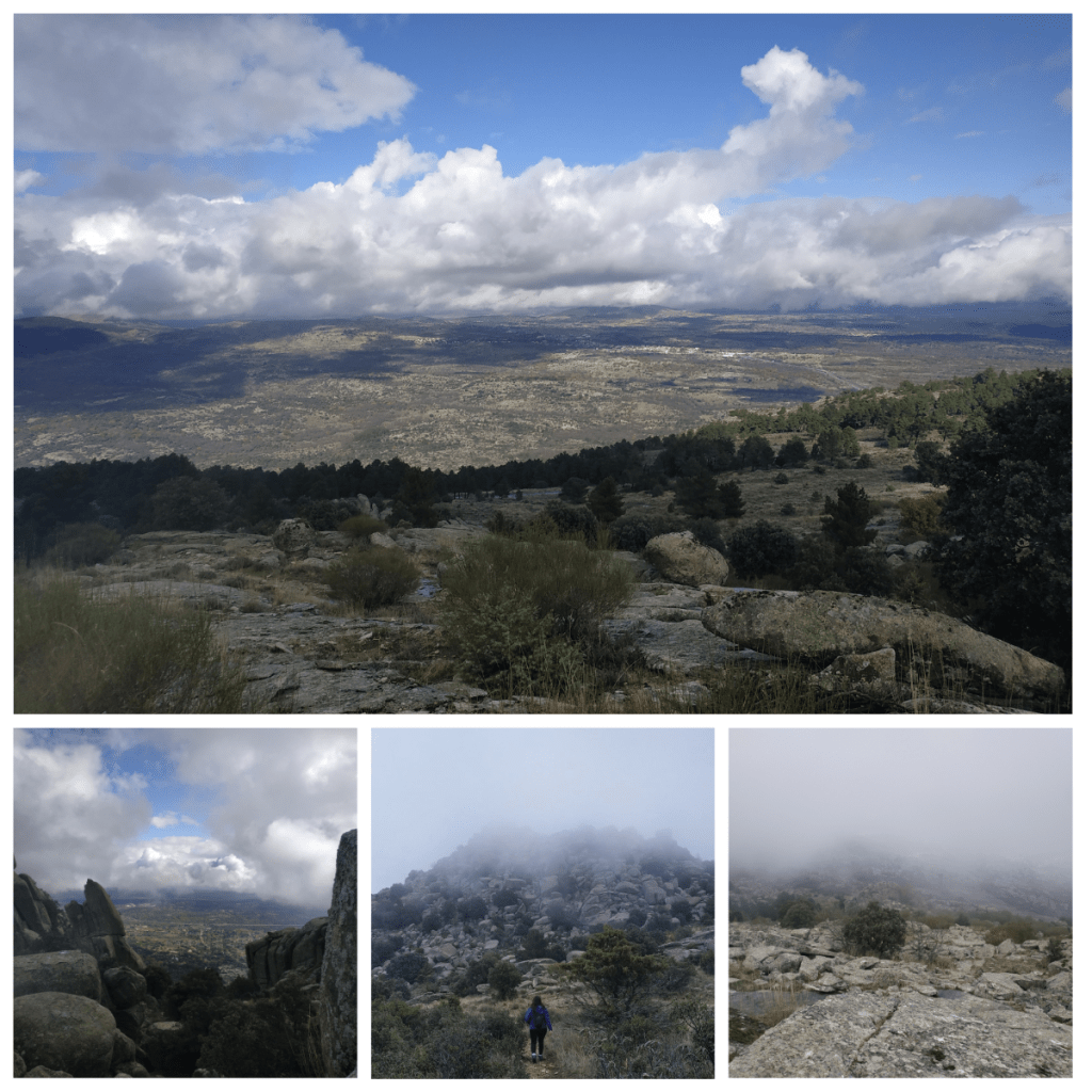Aunque la ruta continúa por toda la Sierra de la Cabrera hasta el Pico el Pornoso y la Peña del Águila, hasta descender por el Collado del Alfrecho, después de comer nos alcanzó la niebla, así que prudentemente deshicimos el camino andado y descendimos hasta nuestro punto de partida.