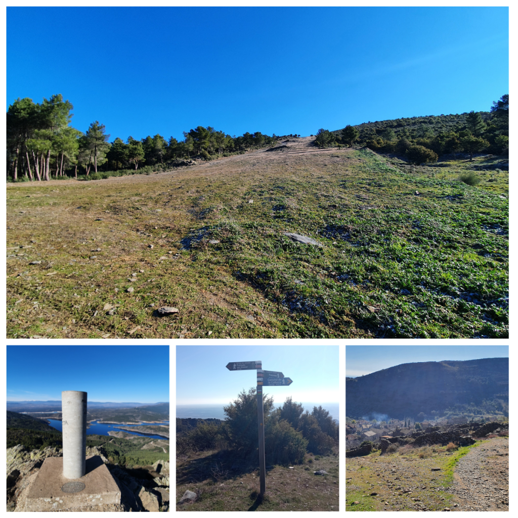 Cuando llegamos a la Peña Escrita, podemos disfrutar de unas vistas increíbles del Embalse de El Atazar hacia el norte, y del valle en dirección sur hacia Patones. Desde ahí, cogemos un cortafuegos a la derecha, por donde seguimos durante 1,1 kilómetros hacia el punto geodésico.